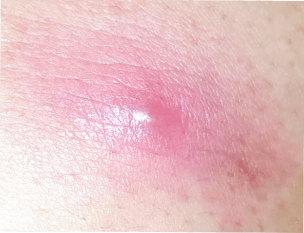Röd, svullen och varm knöl på huden.