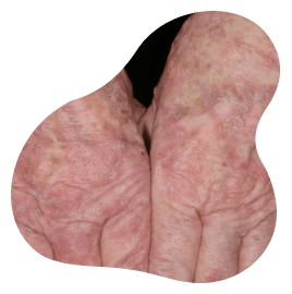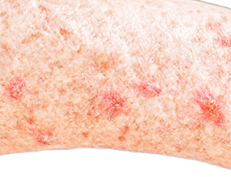 Psoriasis: Fjällande fläckar som kan likna aktiniska keratoser, men psoriasis uppstår ofta på knän, armbågar eller hårbotten och är inte kopplat till UV-skador.