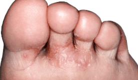 Svampinfektioner: Orsakar rodnad och sprickor, oftast mellan fingrarna. Det brukar synas klara kanter runt området som är infekterad och svampen kan behandlas med svampdödande medel.