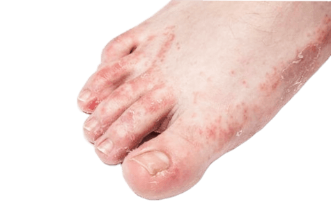 Kontaktallergi: Kan ge rodnad och klåda likt svamp, men utlöses av allergiska reaktioner mot material som skor eller tvättmedel. Det försvinner vid undvikande av allergenet.