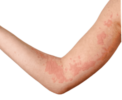 Svampinfektion: Kan bilda ringformade, röda och kliande fläckar med tydliga kanter.