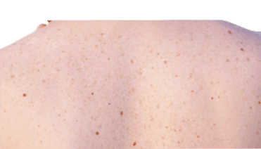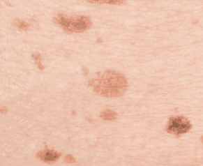 Mörkare fläckar på huden, oftast ljusbruna till mörkbruna.