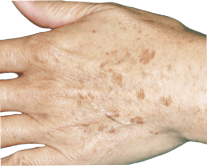 Lentigo senilis (åldersfläckar): Liknar solfläckar men är främst kopplade till naturligt åldrande.