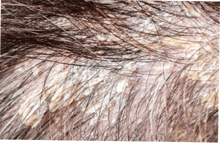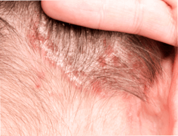 Röd, torr och fjällande hud: Ofta i hårbotten, runt näsan, på ögonbrynen och bakom öronen.