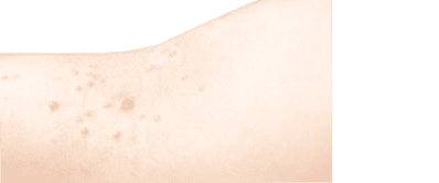 Keratosis pilaris: Små upphöjda prickar, ofta på överarmarna eller låren. Kallas ofta "kycklinghud".