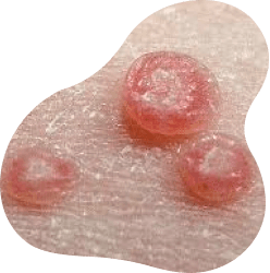 Vårtliknande små knottror med en grop i mitten.