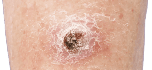Fjällande eller skrovlig fläck: En hudförändring som gradvis växer och kan bli tjockare med tiden.