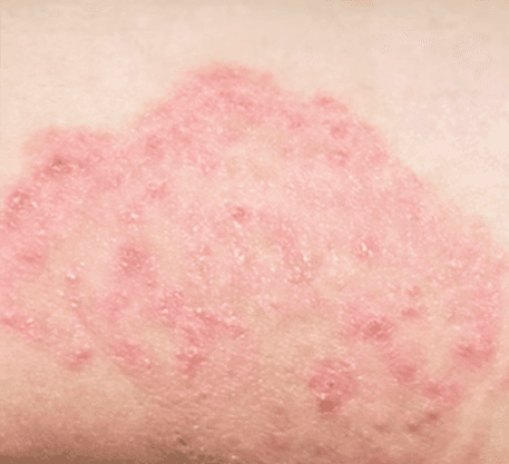 Röda, fjällande utslag: Ofta ringformade med en tydligare kant.